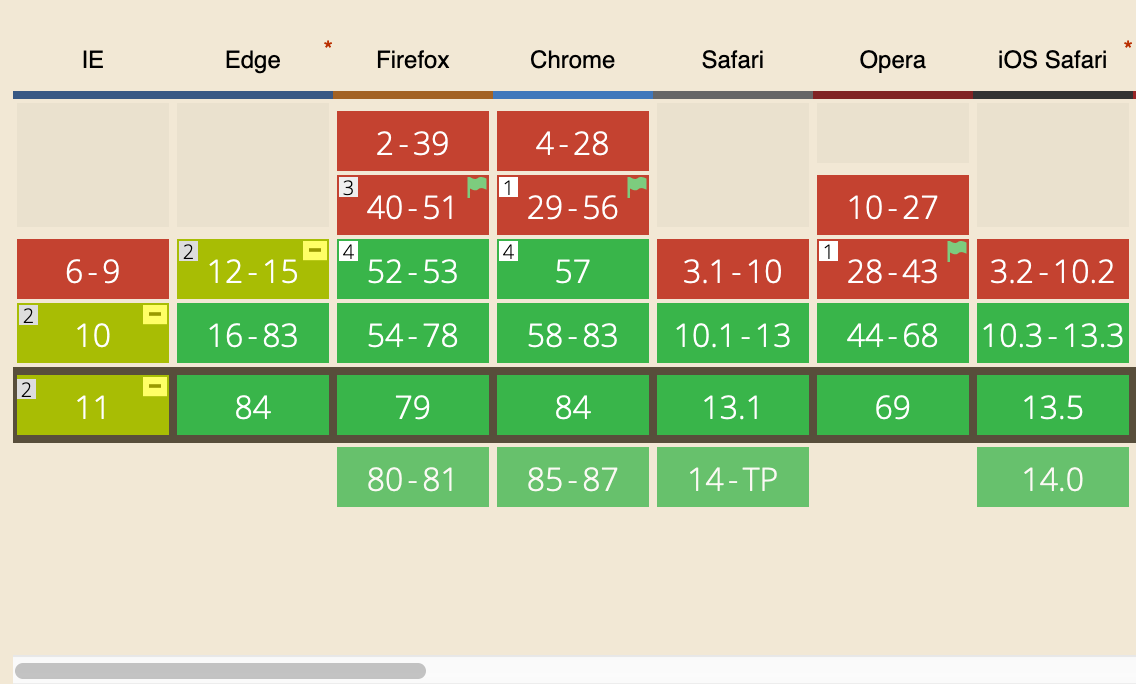 브라우저 버전별로 지원 여부를 확인할 수 있음