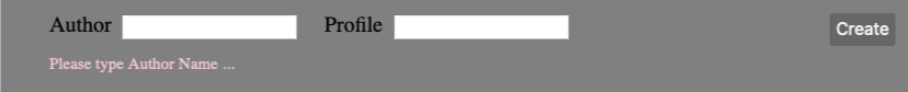 먼저 폼을 생성한다. Author와 Profile이 화면 크기에 따라서 세로 혹은 가로로 정렬되기를 바라서 li 태그로 감쌌다. 그리고 Create의 onclick에 연결해준다.